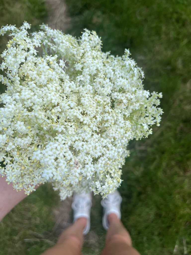 It’s best to pick elderflower in the morning of a sunny day when the tiny creamy coloured flowers are in blossom rather than in bud.